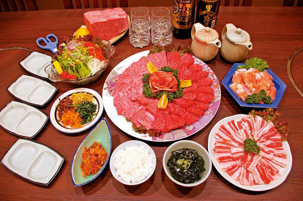 黒毛和牛、ライス、キムチ、野菜サラダ、ナムル。