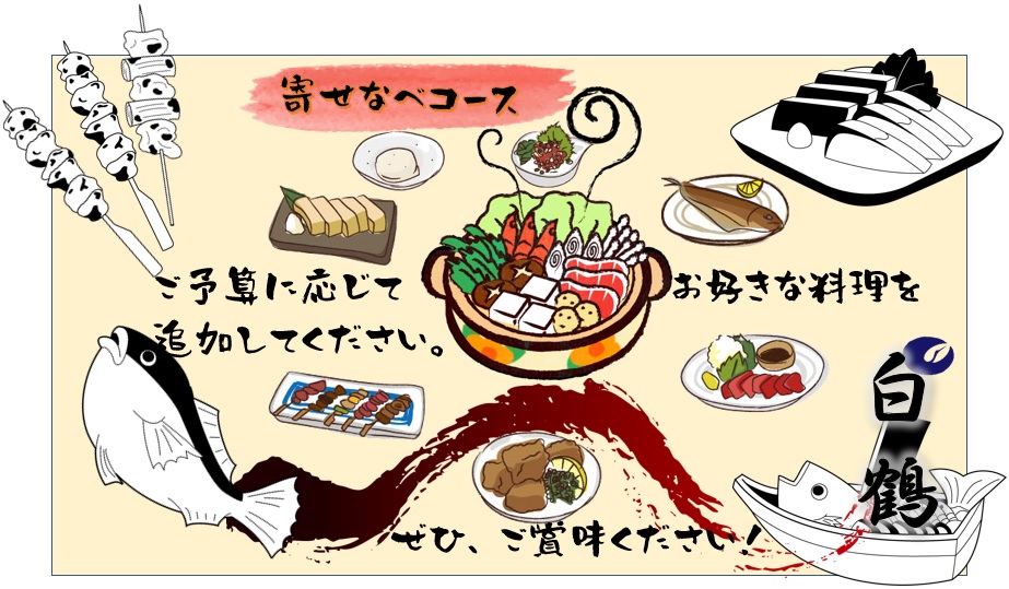 刺身、串焼き、揚物等、煮物、焼おにぎり、小鉢、汁物。お店により料理内容が変更される場合がります。 人気